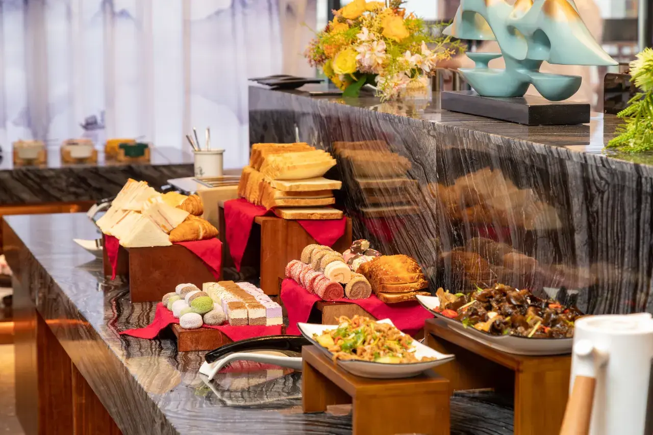 HUAYI Hotel’s on-site restaurant delights with a vibrant breakfast buffet blending Chinese and Western flavors—think fluffy baozi, fresh congee, eggs any style, and crispy toast—all served daily from 7:30–10:30 AM. Praised by guests for quality and variety, the spread rivals dedicated eateries, offering a satisfying start just steps from your room. Perfect for busy travelers craving both convenience and taste.